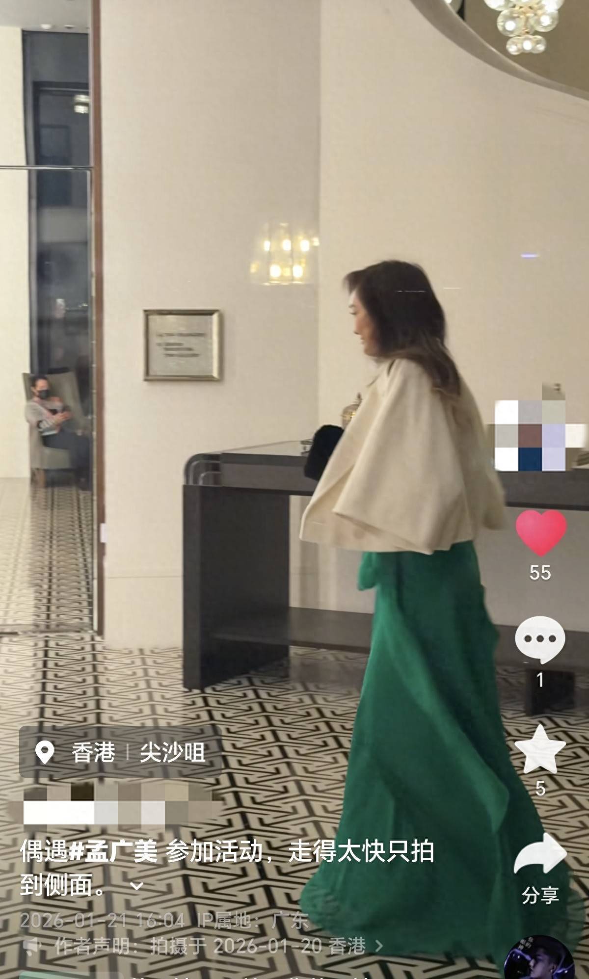 1月20日,有网友在中国香港偶遇了正在参加活动的孟广美,虽然只拍到了她的侧颜,但也能看出来她的脸部变化好大。