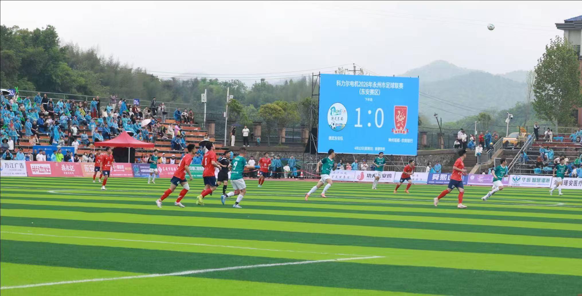 15时,比赛正式开球。上半场,双方陷入中场缠斗,互交白卷。换边再战,东安队加快进攻节奏。第55分钟,东安队7号赵文杰一脚任意球,划出优美弧线越过人墙直接入网——1:0!随后,江华队大举反扑,但未能改写比分,1:0保持到终场,东安主场获胜。